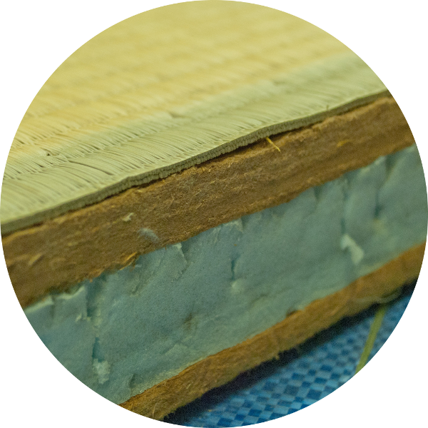 稲わらの間にポリスチレンフォーム・インシュレーションボード等を挟み込んだもの。稲わら畳床と建材畳床の中間品。
